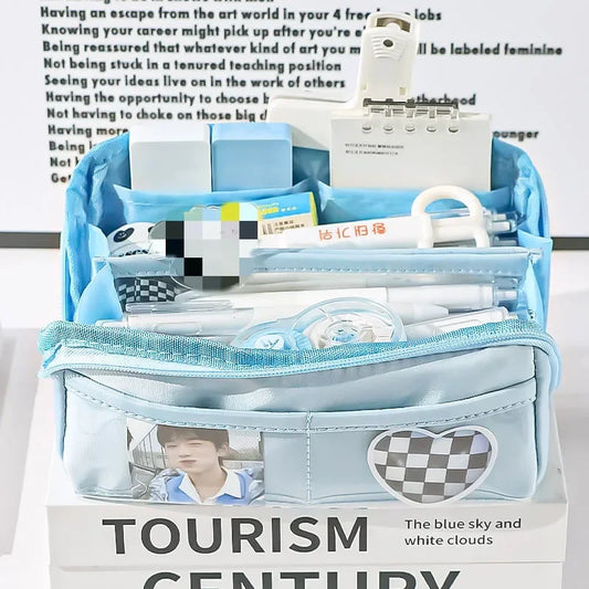 1pc Simplicity 10 Layer Pencil Case Fashion Solid Color Pencil Bag High Capacity Stationery Storage Bag Back To School Student